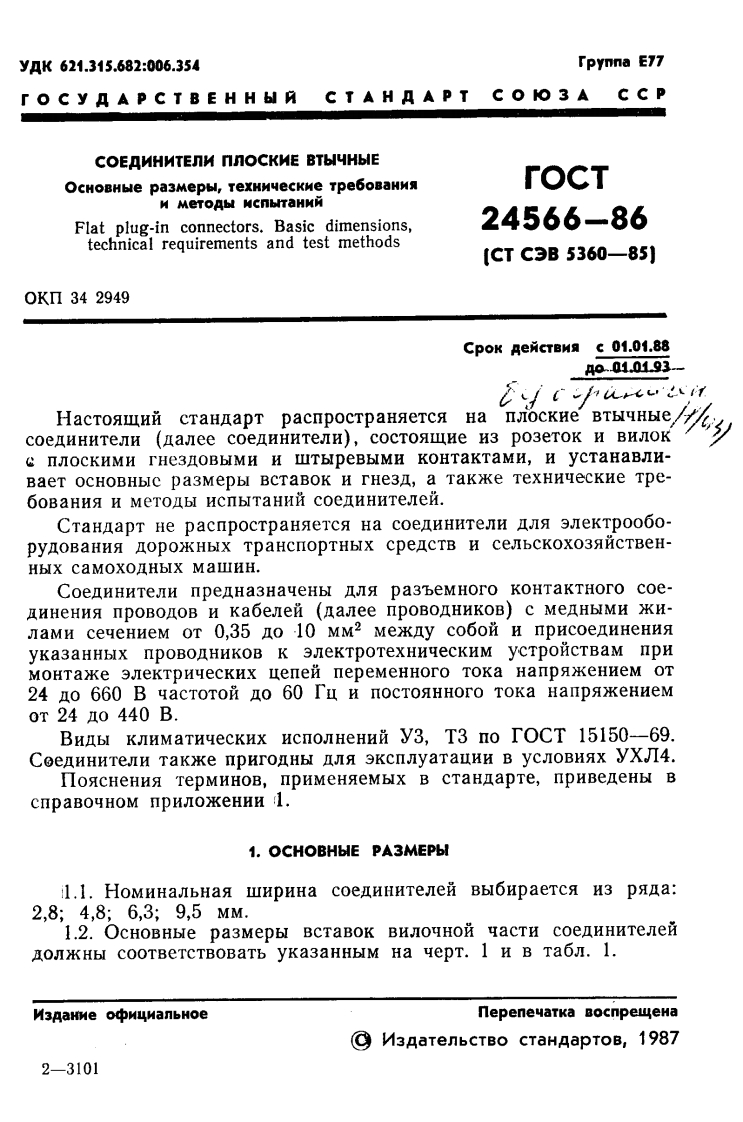 AH566-B6TO C y AA P C T B E HH bIN C T A HA A P TCO KO 3 A CCPCOEANHNTENN nnOCKME BTbIYHbIEOCHOBHbIE PA3MEPbI,TEXHMYECKME TPEBOBAHMAH METOAbI HcnbITAHHHr0CT24566-86(CTC3B5360-85)M3 AaHke oφw叫anbHoeCIBEHHLIH KOMKTET CCCP nO CTAHAAPTAMocKBa生7宽43