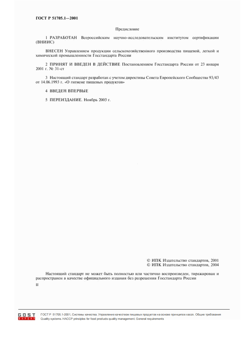 T0CTP51705.1-2001TOCyIAPCTBEHHbIN CTAHIAPT POCCHACKON EIEPALNMCucTeMbI KayecTBayIIPABJIEHNE KAYECTBOM IINILIEBbIXIIPOIYKTOB HA OCHOBE IIPNHIINIIOBXACCIIOoune TpeooBaHnaM3 anne o中munaabHoerOCCTAHAPT POCCHNM oc x aaGOSTTOCT P 51705.1-2001,CncTeMbl KaNecTBa.ynpaBneHne kaveCTBOM nMweBbix npoyxTOB Ha OCHoBe npMHuMnoB xaccn.O6me Tpe6oBaHnRQuality systems.HACCP principles for food products quality management.General requirements