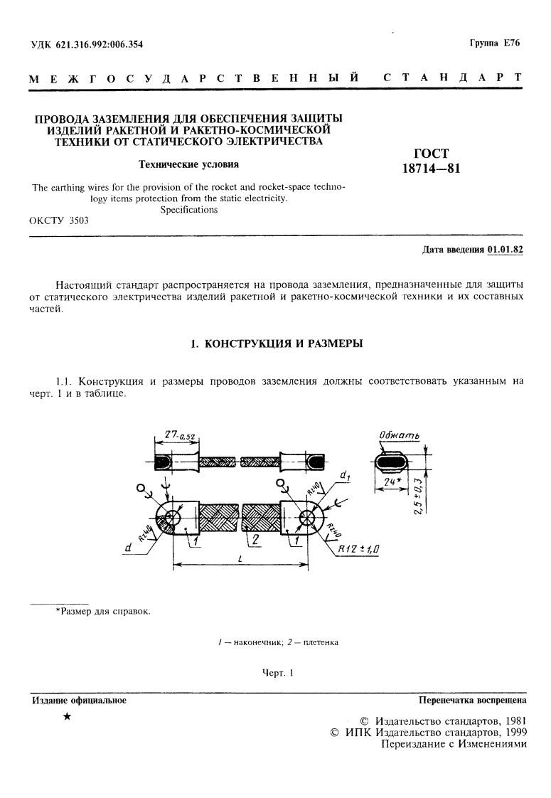 T0CT18714-81MEXK IO C y I A P C T B E HH BI C T A H I A P THPOBOHA 3A3EMJIEHIAII OBECHEYEHNA 3AILINTbI H3IEJINNPAKETHON M PAKETHO-KOCMMYECKOMTEXHIKM OT CTATHYECKOTOJIEKTPMYECTBATEXHNYECKNE YCJIOBNAM3 taHHe o中IHaJIbHoe86-2MIIK M3IATEJbCTBO CTAHIIAPTOBM o c K B a