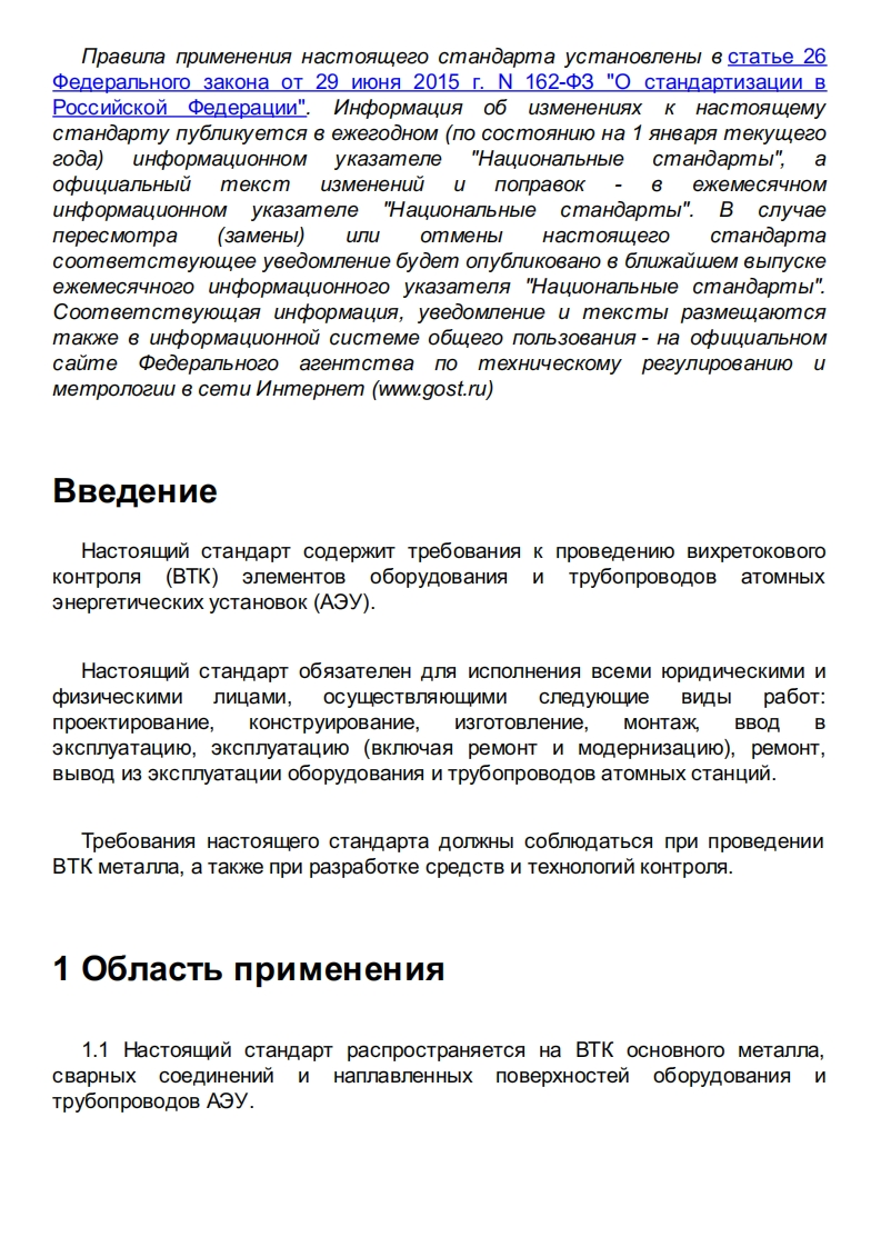 「0CTP50.05.10-2018HALVOHANbHbIN CTAHAAPT POCCVNCKON EEPALMMCNCTeMa oueHKN COOTBeTCTBNA B o6nactn cnonb30BaHna aTOMHON 3HepmnOLEHKA COOTBETCTBNA B OPME KOHTPONAyHnonunpoBaHHble MeTonKn.BxpeToKOBbIN KOHTponbConformity assessment system for the use of nuclear energy.Conformityassessment in the form of control.Unified methods.Eddy current control.0KC27.120.99aTa BBeneHna 2019-02-01冂oenncnoBne1 PA3PABOTAH AKUNoHepHbIM 06weCTBOM "KoHuepH PoC3HeproaToM,OOO"LeHTp TexHnyecKnx KoMneTeHunn aToMHoN OTpacnn"(OOO "LTKAO")2 BHECEH TexHn4eCKNM KOMMTeTOM no CTaHAapTn3aunn TK 322 "ATOMHaTeXHNKa"3 yTBEP>KIEH V BBEDEH B EVCTBVE Npnka3oM enepanbHoroareHTCTBa no TexHMyeckoMy perynupoBaHnio n Metponornn oT 28 neka6pa 2018 r.N1176-cT4 BBEEH BNEPBbIE