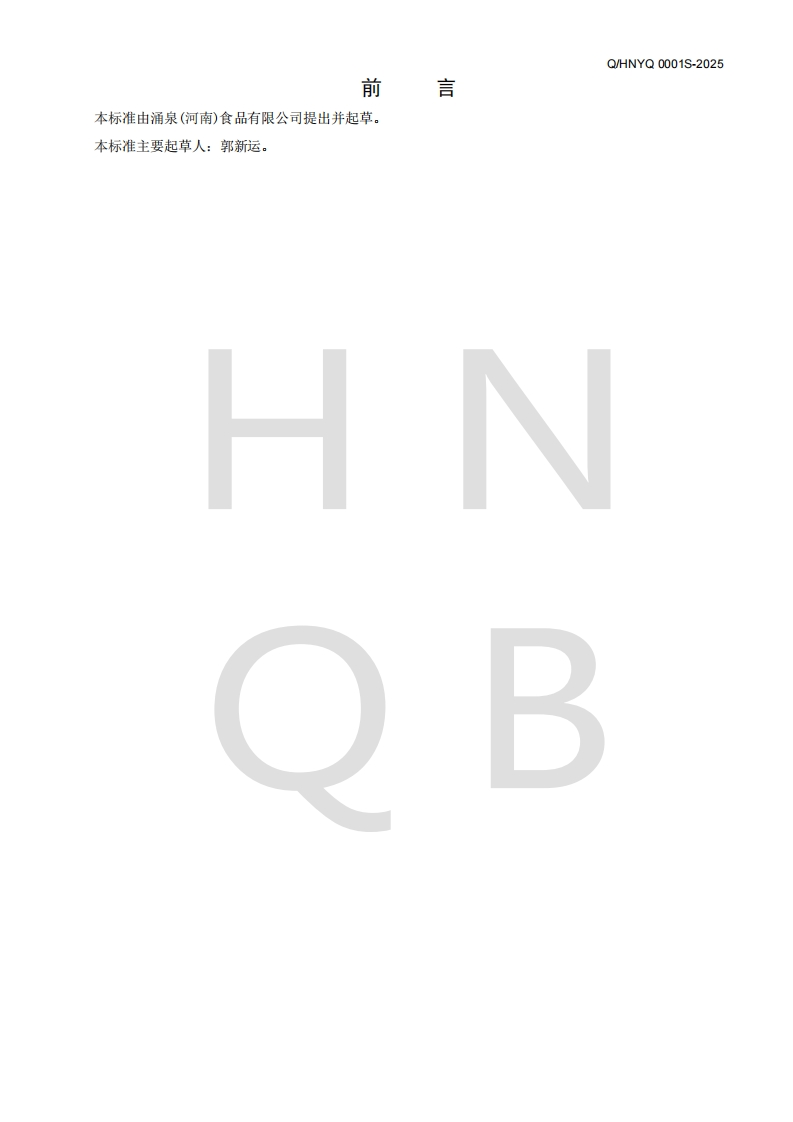 涌泉(河南)食品有限公司企业强制性标准规范Q_HNYQ0001S-2025山楂复合型果汁饮料2025-07-15发布2025-07-15实施涌泉(河南)食品有限公司发布348072@abc30天前发布关注私信0.20MB7页026涌泉(河南)食品有限公司企业强制性标准规范Q_HNYQ0001S-2025山楂复合型果汁饮料2025-07-15发布2025-07-15实施涌泉(河南)食品有限公司发布此内容为付费资源,请付费后查看¥19¥29黄金会员免费钻石会员免费立即购买您当前未登录!建议登陆后购买,可保存购买订单付费资源 第1页 / 共7页 第2页 / 共7页 试读已结束,还剩5页,您可下载完整版后进行离线阅读 THE END标准规范 喜欢就支持一下吧收藏