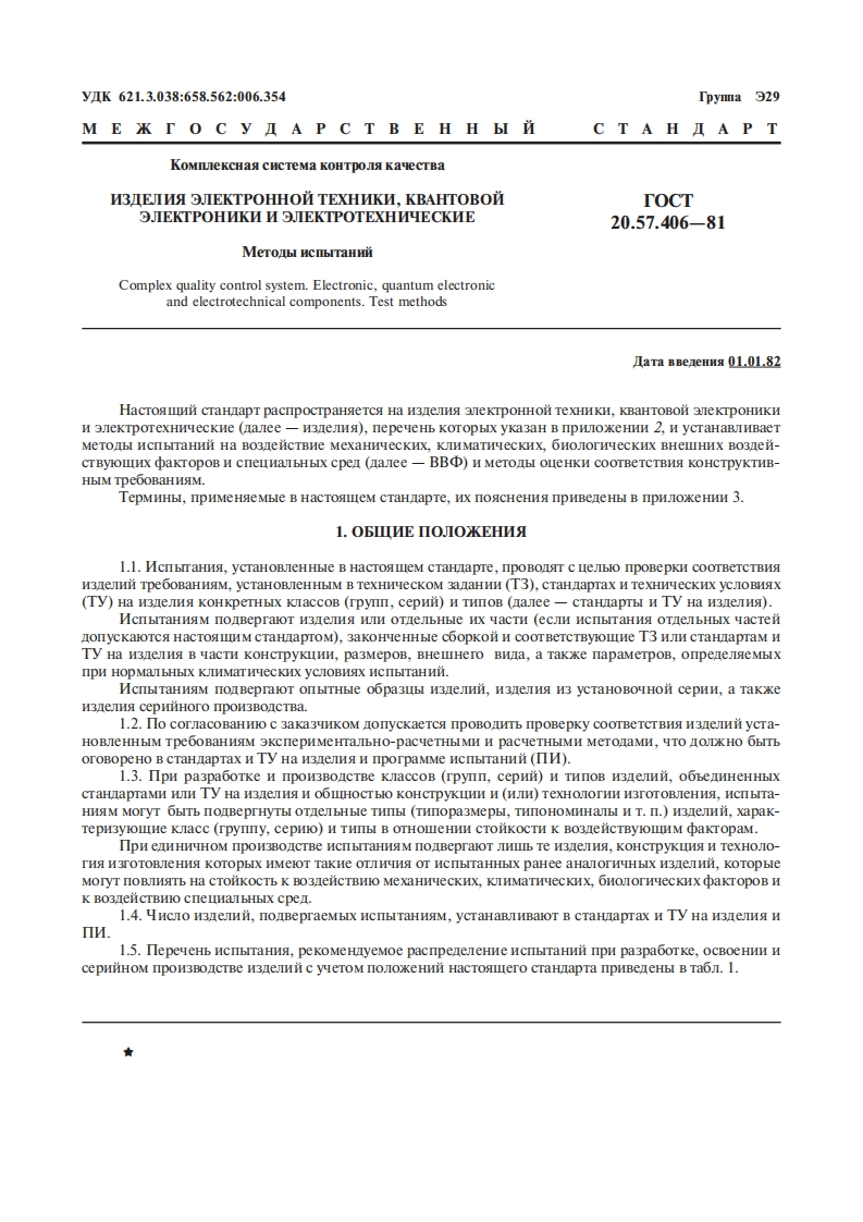 T0CT20.57.406-81M EKT O C y I A P C T B E HH BI HCTAHIAPTKOMIIJIEKCHAA CHCTEMA KOHTPOJIA KAYECTBAM3IEJINA 9JEKTPOHHON TEXHNKN,KBAHTOBON JIEKTPOHNKIN JIEKTPOTEXHNYECKIEMETOIbI NCIIbITAHNNM oc K B a