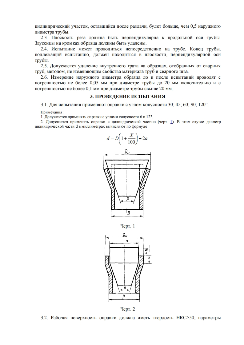TOCYIAPCTBEHHbIN CTAHIAPT COIO3A CCPTPYBLIMeTon HcnbITaHna Ha pa3layyT0CT8694-75*(CTC3B480-77)MocKBaHIIK H3IATEJIbCTBO CTAHIAPTOB1998TOCYIAPCTBEHHLIN CTAHIAPT COIO3A CCPTOCTTPYBbI8694-75*Meroa HcnbITaHHa Ha pa3aqy(CTC3B480-77)Tubing.Expansion testing methodB3amenT0CT8694-58TocTaHoBeHHeM TocyaaperBeHHoro KoMHTeTa cTaHaapToB CoBeTa MHHHeTpoBCCCP OT 23.12.75 Ne 3980 aara BBeaeHus ycraHowena01.01.77OrpaHnyenne cpoka aeiicTBHa CHaTo nocraHoB.eHHeM ToccTaHaapra oT 10.09.92 Ne1152HacToaui craHnapT pacnpocrpaHaerca Ha Merannnyeckne becwoBHble n cBapHbleTpy6bI Kpyrnoro ceyeHna c TOJIHHon cTeHKH He oonee 9,0 MM H IHamerpoM Tpy6bI Heoonee 150 MM H ycraHaBnBaeT Meron HcnbITaHna Ha pa3nauy npn Temneparype (20+10)C.CraHnapT cooTBeTcTByeT Tpe6oBaHHAM pekomeHnaun C9B no craHnapTn3aun PC 68-63 H pekomeHnaun HCO P 166.CraHnapT noJHocTbIo cooTBeTCTByeT CT C9B 480-77 B 4acTH HcnbITaHHa Ha pa3naty.(H3MeHeHHaa peaaKuns,H3M.Ne 1).1.OBO3HAYEHIA1.1.IIpH HcnbITaHHH Ha pa3nayy npenycmarpnBarorca cneyioume 06o3HayeHns:HayabHbli Hapy Hbl amerp o6pa3ua,MM -D;KOHeyHbli Hapy KHbli namerp oopa3ua,MM DH;HayabHa TOJIHHa cTeHKH oopa3ua,MM a;-IHHa 06pa3ua,MM L;yroJ KoHycHoCTH onpaBKH,rpan.-B;BeJnyHHa pa3naym,%-X:-AHameTp IHIHHnpHqeckon yacTH onpaBKH,MM -d.(H3MeHeHHas penaKuns,H3M.Ne 1).2.METOI OTEOPA OBPA3LIOB2.1.Ina HcnbITaHna Tpy6 Ha pa3nayy npnmeHor oopa3ubI B Bnne narpyoka,oTpe3aHHoro OT KOHua Tpy6bL,AJHHoM L~2D,ecn yron onpaBkn no 30 H L1,5D,ecnnyron onpaBKH6oIee30°,Ho He MeHee50MM.2.2.omyckaerca npHMeHaTb H 6onee kopoTkHe 06pa3ubI npn ycnoBHn,YTO