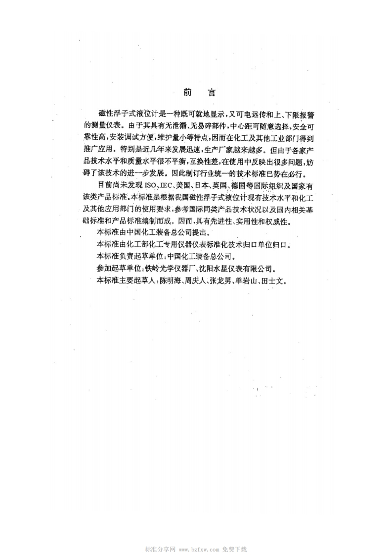 中华人民共和国化工行业标准HG_T2742-199520010490磁性浮子式液位计技术条件348072@abc30天前发布关注私信3.02MB13页042中华人民共和国化工行业标准HG_T2742-199520010490磁性浮子式液位计技术条件此内容为付费资源,请付费后查看¥19¥26黄金会员免费钻石会员免费立即购买您当前未登录!建议登陆后购买,可保存购买订单付费资源 第1页 / 共13页 第2页 / 共13页 试读已结束,还剩11页,您可下载完整版后进行离线阅读 THE END标准规范 喜欢就支持一下吧收藏