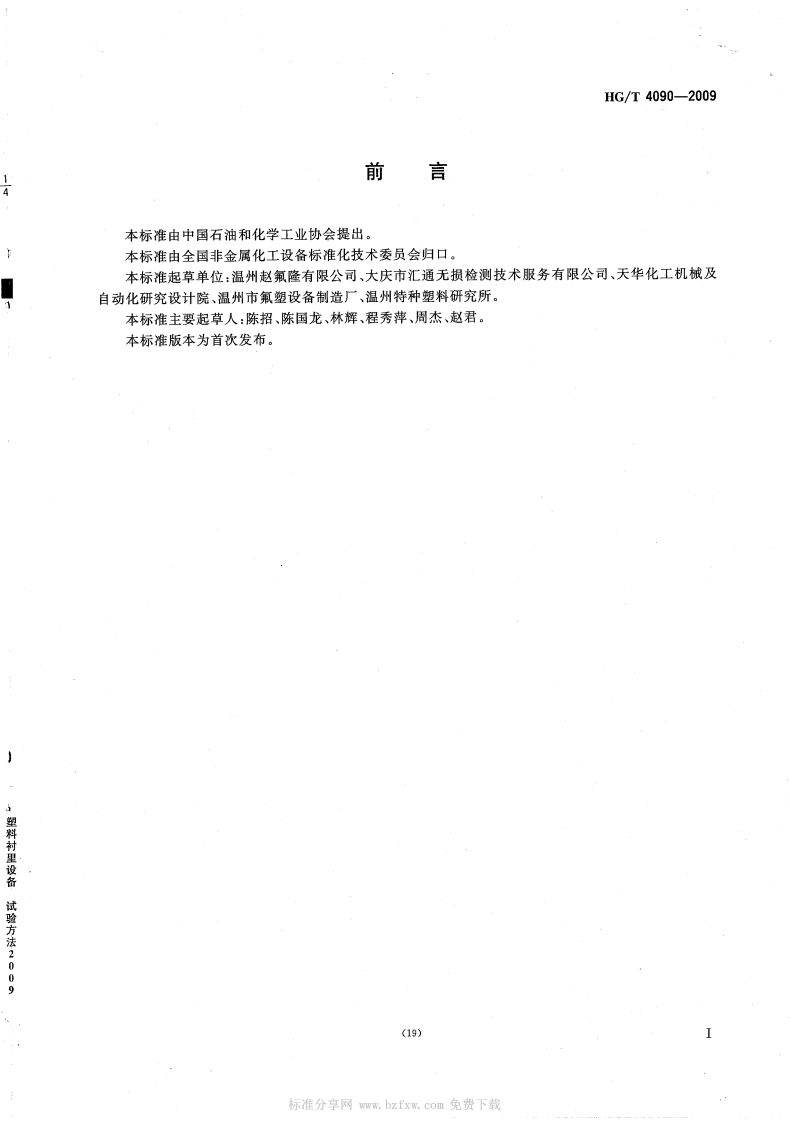 中华人民共和国化工行业标准HG_T4090-2009电火花试验方法塑料衬里设备Sparktestmethodforequipmentslinedwithplastics348072@abc2个月前发布关注私信0.13MB4页029中华人民共和国化工行业标准HG_T4090-2009电火花试验方法塑料衬里设备Sparktestmethodforequipmentslinedwithplastics此内容为付费资源,请付费后查看¥19¥26黄金会员免费钻石会员免费立即购买您当前未登录!建议登陆后购买,可保存购买订单付费资源 第1页 / 共4页 第2页 / 共4页 试读已结束,还剩2页,您可下载完整版后进行离线阅读 THE END标准规范 喜欢就支持一下吧收藏
