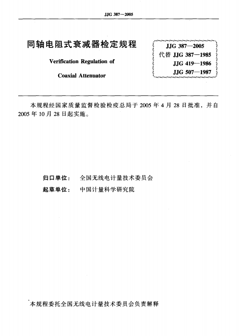 JJG387-2005同轴电阻式衰减器348072@abc4个月前发布关注私信0.29MB13页024JJG387-2005同轴电阻式衰减器此内容为付费资源,请付费后查看¥13¥18黄金会员免费钻石会员免费立即购买您当前未登录!建议登陆后购买,可保存购买订单付费资源 第1页 / 共13页 第2页 / 共13页 试读已结束,还剩11页,您可下载完整版后进行离线阅读 THE END标准规范 文本预览 可可G中华人民共和国国家计量检定规程JJG387-2005同轴电阻式衰减器Coaxial Attenuator2005-04-28发布2005-10-28实施国家质量监督检验检疫总局发布 查看更多 收起部分 喜欢就支持一下吧收藏
