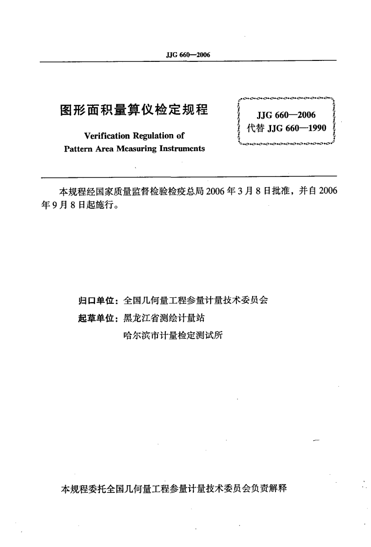JJG660-2006图形面积量算仪348072@abc2个月前发布关注私信0.48MB21页0428JJG660-2006图形面积量算仪此内容为付费资源,请付费后查看¥13¥18黄金会员免费钻石会员免费立即购买您当前未登录!建议登陆后购买,可保存购买订单付费资源 第1页 / 共21页 第2页 / 共21页 试读已结束,还剩19页,您可下载完整版后进行离线阅读 © 版权声明文章版权归作者所有,未经允许请勿转载。THE END标准规范 文本预览 可G中华人民共和国国家计量检定规程JJG6602006图形面积量算仪Pattern Area Measuring Instruments2006-03-08发布2006-09-08实施国家质量监督检验检疫总局发布 查看更多 收起部分 喜欢就支持一下吧点赞8 分享QQ空间微博QQ好友海报分享复制链接收藏