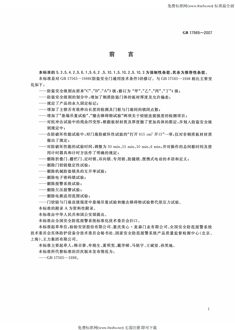 中华人民共和国国家标准GB17565-2007代替GB17565-1998防盗安全门通用技术条件Generalspecificationburglaryresistantsafetydoor348072@abc31天前发布关注私信2.37MB17页039中华人民共和国国家标准GB17565-2007代替GB17565-1998防盗安全门通用技术条件Generalspecificationburglaryresistantsafetydoor此内容为付费资源,请付费后查看¥19¥26黄金会员免费钻石会员免费立即购买您当前未登录!建议登陆后购买,可保存购买订单付费资源 第1页 / 共17页 第2页 / 共17页 试读已结束,还剩15页,您可下载完整版后进行离线阅读 THE END标准规范 喜欢就支持一下吧收藏