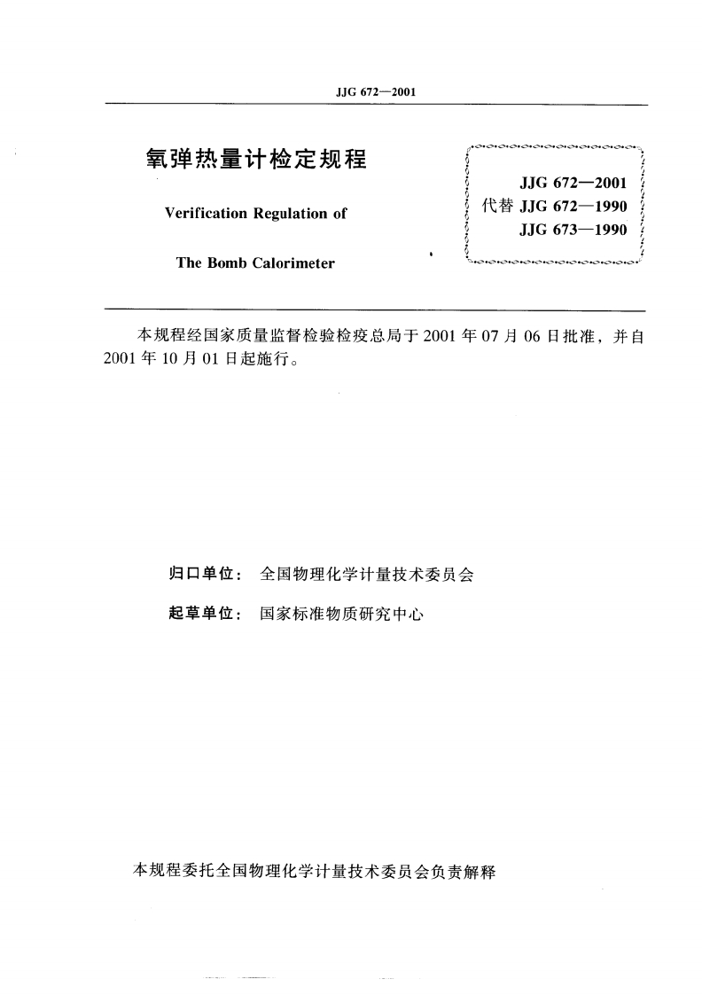 JJG672-2001氧弹热量计348072@abc4个月前发布关注私信0.42MB14页046JJG672-2001氧弹热量计此内容为付费资源,请付费后查看¥13¥18黄金会员免费钻石会员免费立即购买您当前未登录!建议登陆后购买,可保存购买订单付费资源 第1页 / 共14页 第2页 / 共14页 试读已结束,还剩12页,您可下载完整版后进行离线阅读 THE END标准规范 文本预览 户点,好水,,可可G中华人民共和国国家计量检定规程JJG672一2001氧弹热量计Bomb Calorimeter2001-07-06发布2001-10-01实施国家质量监督检验检疫总局发布 查看更多 收起部分 喜欢就支持一下吧收藏