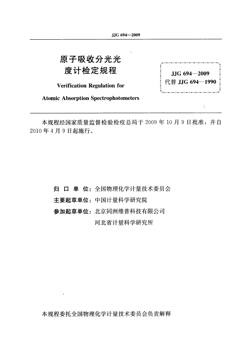 JJG694-2009原子吸收分光光度计348072@abc4个月前发布关注私信0.51MB18页045JJG694-2009原子吸收分光光度计此内容为付费资源,请付费后查看¥13¥18黄金会员免费钻石会员免费立即购买您当前未登录!建议登陆后购买,可保存购买订单付费资源 第1页 / 共18页 第2页 / 共18页 试读已结束,还剩16页,您可下载完整版后进行离线阅读 THE END标准规范 文本预览 可可G中华人民共和国国家计量检定规程JJG694-2009原子吸收分光光度计Atomic Absorption Spectrophotometers2009-10-09发布2010-04-09实施国家质量监督检验检疫总局发布 查看更多 收起部分 喜欢就支持一下吧收藏