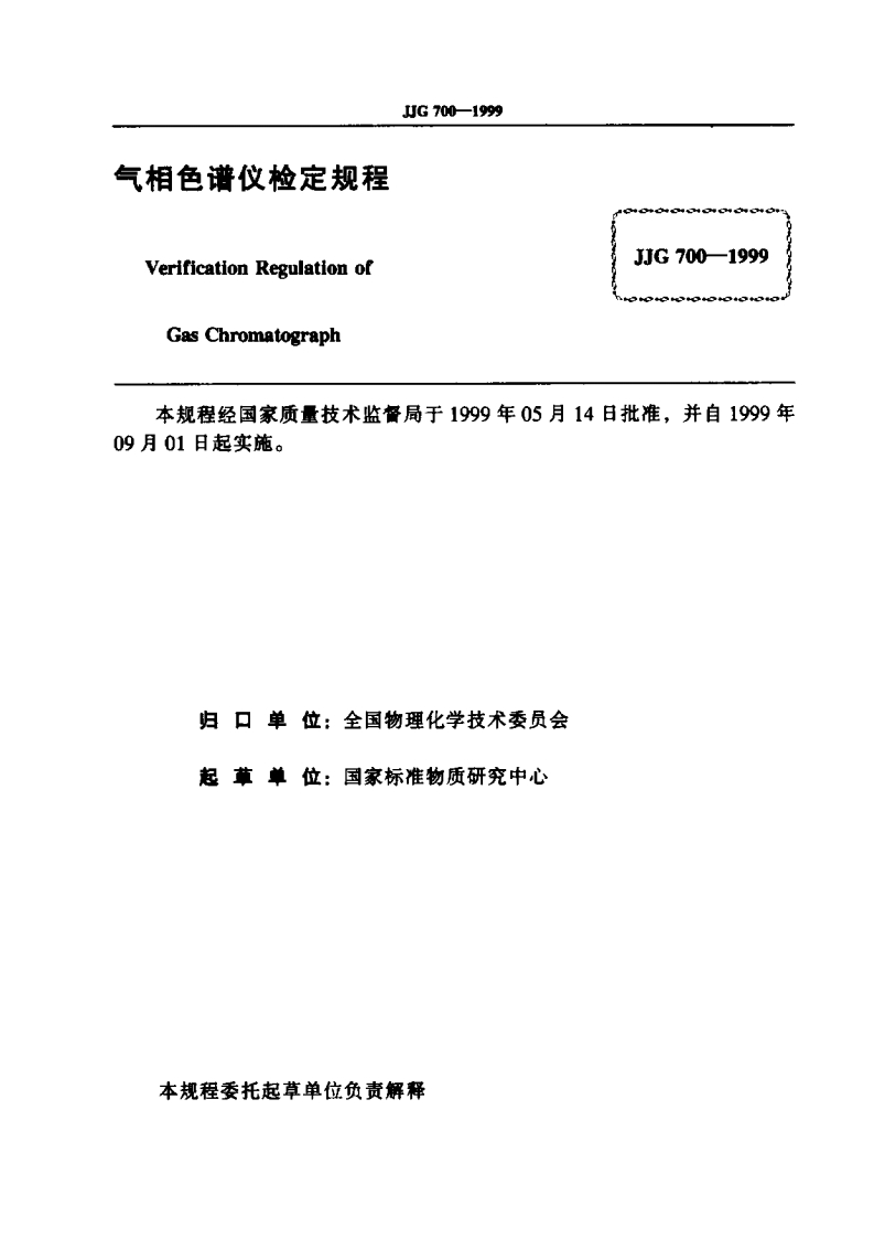 JJG700-1999气相色谱仪348072@abc4个月前发布关注私信0.26MB18页028JJG700-1999气相色谱仪此内容为付费资源,请付费后查看¥13¥18黄金会员免费钻石会员免费立即购买您当前未登录!建议登陆后购买,可保存购买订单付费资源 第1页 / 共18页 第2页 / 共18页 试读已结束,还剩16页,您可下载完整版后进行离线阅读 THE END标准规范 文本预览 可可G中华人民共和国国家计量检定规程JJG700一1999气相色谱仪Gas Chromatograph199905-14发布19990901实施国家质量技术监督局发布 查看更多 收起部分 喜欢就支持一下吧收藏