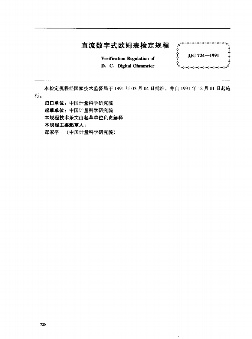 JJG724-1991直流数字式欧姆表348072@abc4个月前发布关注私信0.26MB10页029JJG724-1991直流数字式欧姆表此内容为付费资源,请付费后查看¥13¥18黄金会员免费钻石会员免费立即购买您当前未登录!建议登陆后购买,可保存购买订单付费资源 第1页 / 共10页 第2页 / 共10页 试读已结束,还剩8页,您可下载完整版后进行离线阅读 THE END标准规范 文本预览 直流数字式欧姆表检定规程JJG724一1991a 查看更多 收起部分 喜欢就支持一下吧收藏