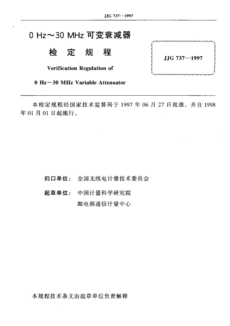 JJG737-19970Hz~30MHz可变衰减器348072@abc4个月前发布关注私信0.19MB12页023JJG737-19970Hz~30MHz可变衰减器此内容为付费资源,请付费后查看¥13¥18黄金会员免费钻石会员免费立即购买您当前未登录!建议登陆后购买,可保存购买订单付费资源 第1页 / 共12页 第2页 / 共12页 试读已结束,还剩10页,您可下载完整版后进行离线阅读 THE END标准规范 文本预览 可JG中华人民共和国国家计量检定规程JJG737-19970Hz~30MHz可变衰减器0 Hz~30 MHz Variable Attenuator1997-06-27发布1998-01-01实施国家技术监督局发布 查看更多 收起部分 喜欢就支持一下吧收藏