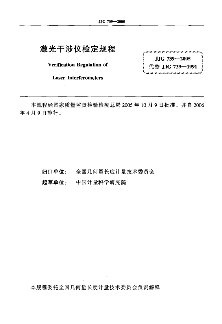 JJG739-2005激光干涉仪348072@abc4个月前发布关注私信0.21MB11页037JJG739-2005激光干涉仪此内容为付费资源,请付费后查看¥13¥18黄金会员免费钻石会员免费立即购买您当前未登录!建议登陆后购买,可保存购买订单付费资源 第1页 / 共11页 第2页 / 共11页 试读已结束,还剩9页,您可下载完整版后进行离线阅读 THE END标准规范 文本预览 可G中华人民共和国国家计量检定规程JJG739-2005激光干涉仪Laser Interferometers2005-10-09发布2006-04-09实施国家质量监督检验检疫总局发布 查看更多 收起部分 喜欢就支持一下吧收藏