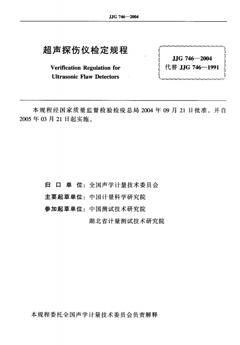 JJG746-2004超声探伤仪348072@abc4个月前发布关注私信0.40MB17页026JJG746-2004超声探伤仪此内容为付费资源,请付费后查看¥13¥18黄金会员免费钻石会员免费立即购买您当前未登录!建议登陆后购买,可保存购买订单付费资源 第1页 / 共17页 第2页 / 共17页 试读已结束,还剩15页,您可下载完整版后进行离线阅读 THE END标准规范 文本预览 J©中华人民共和国国家计量检定规程JJG746一2004超声探伤仪Ultrasonic Flaw Detectors2004-09-21发布2005-03-21实施国家质量监督检险检疫总局发布 查看更多 收起部分 喜欢就支持一下吧收藏