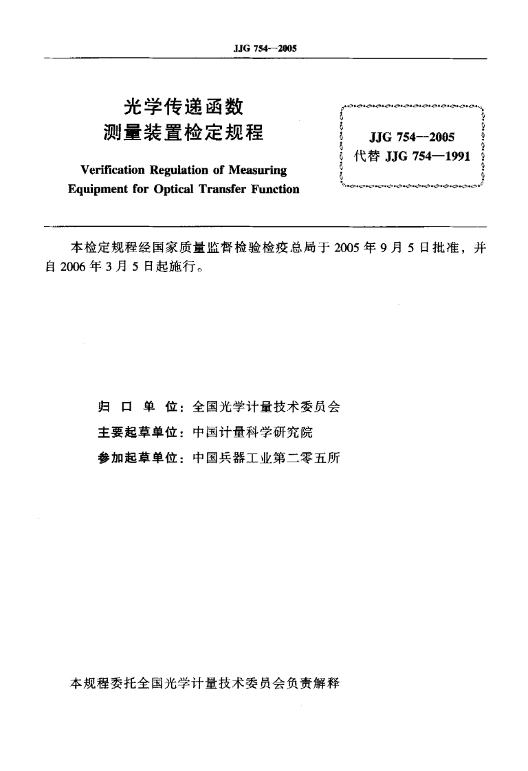 JJG754-2005光学传递函数测量装置348072@abc4个月前发布关注私信0.46MB22页033JJG754-2005光学传递函数测量装置此内容为付费资源,请付费后查看¥13¥18黄金会员免费钻石会员免费立即购买您当前未登录!建议登陆后购买,可保存购买订单付费资源 第1页 / 共22页 第2页 / 共22页 试读已结束,还剩20页,您可下载完整版后进行离线阅读 THE END标准规范 文本预览 可可G中华人民共和国国家计量检定规程JJG754一2005光学传递函数测量装置Measuring Equipment for Optical Transfer Function2005-09-05发布2006-03-05实施国家质量监督检验检疫总局发布 查看更多 收起部分 喜欢就支持一下吧收藏