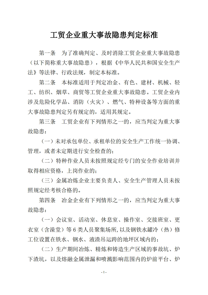 中华人民共和国应急管理部令第10号《工贸企业重大事故隐患判定标准》已经2023年3月20日应急管理部第7次部务会议审议通过,现予公布,自2023年5月15日起施行。部长王祥喜348072@abc31天前发布关注私信0.13MB10页040中华人民共和国应急管理部令第10号《工贸企业重大事故隐患判定标准》已经2023年3月20日应急管理部第7次部务会议审议通过,现予公布,自2023年5月15日起施行。部长王祥喜此内容为付费资源,请付费后查看¥19¥23黄金会员免费钻石会员免费立即购买您当前未登录!建议登陆后购买,可保存购买订单付费资源 第1页 / 共10页 第2页 / 共10页 试读已结束,还剩8页,您可下载完整版后进行离线阅读 THE END标准规范 喜欢就支持一下吧收藏
