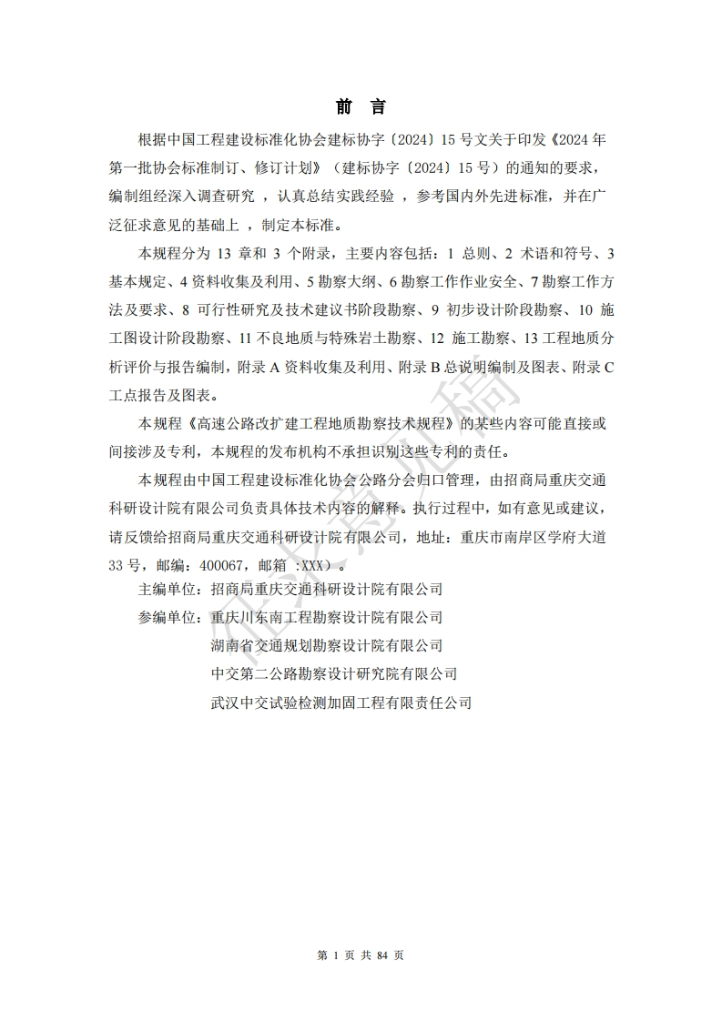 中国工程建设标准化协会标准andardofChinaAssociationforEngineeringConstructionStandardization高速公路改扩建工程地质勘察技术规程TechnicalRegulationsforEngineeringGeologicalSurveyofExpresswayRenovationandExpansionProject(征求意见稿)348072@abc30天前发布关注私信1.93MB85页022中国工程建设标准化协会标准andardofChinaAssociationforEngineeringConstructionStandardization高速公路改扩建工程地质勘察技术规程TechnicalRegulationsforEngineeringGeologicalSurveyofExpresswayRenovationandExpansionProject(征求意见稿)此内容为付费资源,请付费后查看¥14¥19黄金会员免费钻石会员免费立即购买您当前未登录!建议登陆后购买,可保存购买订单付费资源 第1页 / 共85页 第2页 / 共85页 试读已结束,还剩83页,您可下载完整版后进行离线阅读 THE END标准规范 喜欢就支持一下吧收藏