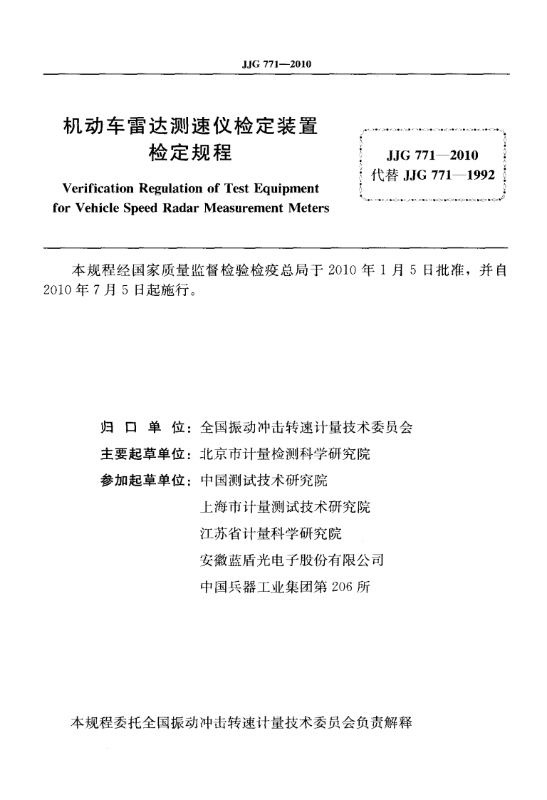 JJG771-2010机动车雷达测速仪检定装置348072@abc4个月前发布关注私信0.25MB17页048JJG771-2010机动车雷达测速仪检定装置此内容为付费资源,请付费后查看¥13¥18黄金会员免费钻石会员免费立即购买您当前未登录!建议登陆后购买,可保存购买订单付费资源 第1页 / 共17页 第2页 / 共17页 试读已结束,还剩15页,您可下载完整版后进行离线阅读 THE END标准规范 文本预览 可可G中华人民共和国国家计量检定规程JJG771-2010机动车雷达测速仪检定装置Test Equipment for Vehicle Speed Radar Measurement Meters2010-01-05发布2010-07-05实施国家质量监督检验检疫总局发布 查看更多 收起部分 喜欢就支持一下吧收藏