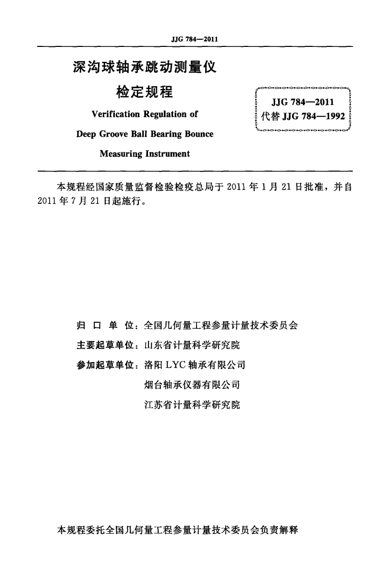 JJG784-2011深沟球轴承跳动测量仪348072@abc3个月前发布关注私信0.20MB12页050JJG784-2011深沟球轴承跳动测量仪此内容为付费资源,请付费后查看¥13¥18黄金会员免费钻石会员免费立即购买您当前未登录!建议登陆后购买,可保存购买订单付费资源 第1页 / 共12页 第2页 / 共12页 试读已结束,还剩10页,您可下载完整版后进行离线阅读 THE END标准规范 文本预览 G中华人民共和国国家计量检定规程JJG784-2011深沟球轴承跳动测量仪Deep Groove Ball Bearing Bounce Measuring Instrument2011-01-21发布2011-07-21实施国家质量监督检验检疫总局发布 查看更多 收起部分 喜欢就支持一下吧收藏