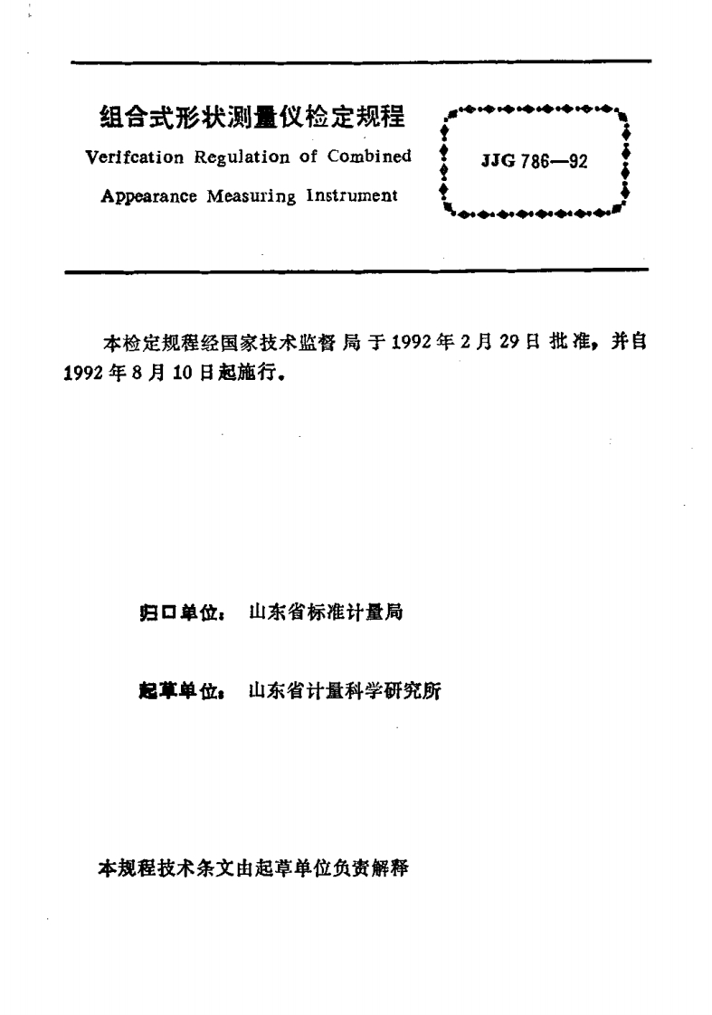 JJG786-1992组合式形状测量仪348072@abc3个月前发布关注私信0.39MB19页034JJG786-1992组合式形状测量仪此内容为付费资源,请付费后查看¥13¥18黄金会员免费钻石会员免费立即购买您当前未登录!建议登陆后购买,可保存购买订单付费资源 第1页 / 共19页 第2页 / 共19页 试读已结束,还剩17页,您可下载完整版后进行离线阅读 THE END标准规范 文本预览 JJG中华人民共和国国家计量检定规程JJG786-92组合式形状测量仪1992年2月29日批准1992年8月10日实施国家技术监督局 查看更多 收起部分 喜欢就支持一下吧收藏
