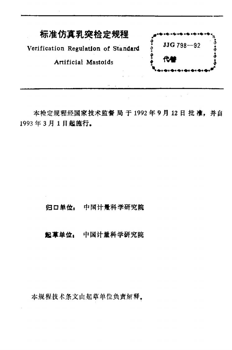 JJG798-1992标准仿真乳突348072@abc3个月前发布关注私信0.10MB8页034JJG798-1992标准仿真乳突此内容为付费资源,请付费后查看¥12¥22黄金会员免费钻石会员免费立即购买您当前未登录!建议登陆后购买,可保存购买订单付费资源 第1页 / 共8页 第2页 / 共8页 试读已结束,还剩6页,您可下载完整版后进行离线阅读 THE END标准规范 文本预览 J灯G中华人民共和国国家计量检定规程JJG798-92标准仿真乳突1992年9月12日批准1993年3月1日实施国家技术监督屙 查看更多 收起部分 喜欢就支持一下吧收藏