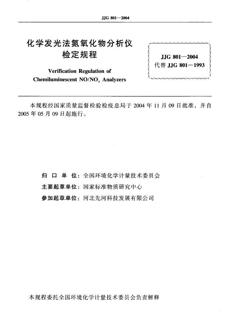 JJG801-2004化学发光法氮氧化物分析仪348072@abc3个月前发布关注私信0.22MB11页024JJG801-2004化学发光法氮氧化物分析仪此内容为付费资源,请付费后查看¥12¥22黄金会员免费钻石会员免费立即购买您当前未登录!建议登陆后购买,可保存购买订单付费资源 第1页 / 共11页 第2页 / 共11页 试读已结束,还剩9页,您可下载完整版后进行离线阅读 THE END标准规范 文本预览 可可G中华人民共和国国家计量检定规程JJG801一2004化学发光法氮氧化物分析仪Chemiluminescent NO/NO,Analyzers2004-11-09发布2005-05-09实施国家质量监督检验检疫总局发布 查看更多 收起部分 喜欢就支持一下吧收藏