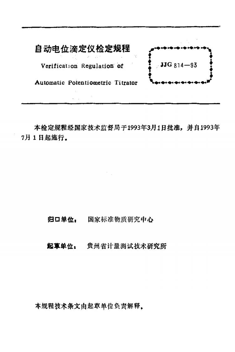 JJG814-1993自动电位滴定仪348072@abc6个月前发布关注私信0.38MB24页039JJG814-1993自动电位滴定仪此内容为付费资源,请付费后查看¥12¥22黄金会员免费钻石会员免费立即购买您当前未登录!建议登陆后购买,可保存购买订单付费资源 第1页 / 共24页 第2页 / 共24页 试读已结束,还剩22页,您可下载完整版后进行离线阅读 THE END标准规范 文本预览 灯G中华人民共和国国家计量检定规程JJG814-93自动电位滴定仪1933年3月1日批准1993年7月1日实施国家技术监督局 查看更多 收起部分 喜欢就支持一下吧收藏