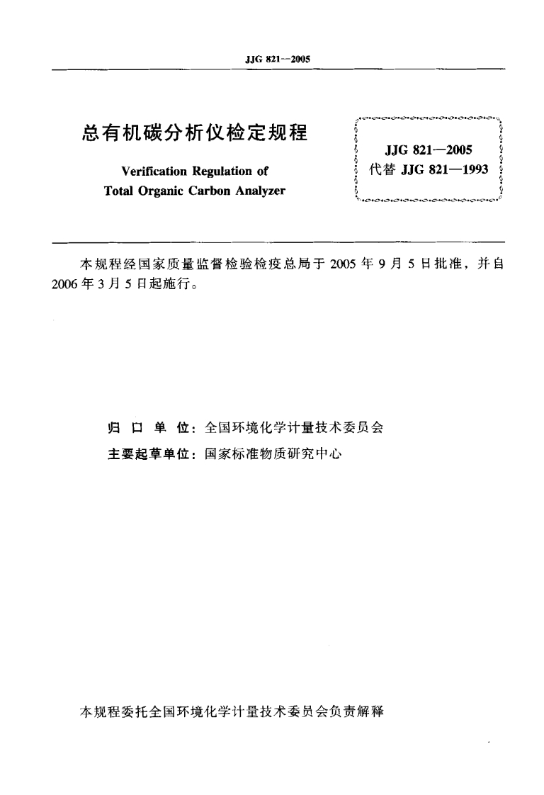 JJG821-2005总有机碳分析仪348072@abc6个月前发布关注私信0.19MB13页045JJG821-2005总有机碳分析仪此内容为付费资源,请付费后查看¥12¥22黄金会员免费钻石会员免费立即购买您当前未登录!建议登陆后购买,可保存购买订单付费资源 第1页 / 共13页 第2页 / 共13页 试读已结束,还剩11页,您可下载完整版后进行离线阅读 THE END标准规范 文本预览 可可G中华人民共和国国家计量检定规程JJG821一2005总有机碳分析仪Total Organic Carbon Analyzer2005-09-05发布2006-03-05实施国家质量监督检验检疫总局发布 查看更多 收起部分 喜欢就支持一下吧收藏