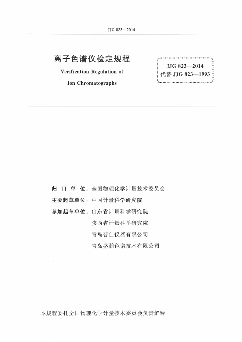 JJG823-2014离子色谱仪检定规程348072@abc4个月前发布关注私信7.38MB18页039JJG823-2014离子色谱仪检定规程此内容为付费资源,请付费后查看¥12¥22黄金会员免费钻石会员免费立即购买您当前未登录!建议登陆后购买,可保存购买订单付费资源 第1页 / 共18页 第2页 / 共18页 试读已结束,还剩16页,您可下载完整版后进行离线阅读 THE END标准规范 文本预览 可订G中华人民共和国国家计量检定规程JJG823-2014离子色谱仪Ion Chromatographs2014-02-14发布2014-08-14实施国家质量监督检验检疫总局发布刺涂是立真伪 查看更多 收起部分 喜欢就支持一下吧收藏