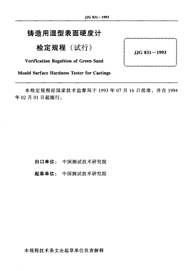 JJG831-1993铸造用湿型表面硬度计(试行)348072@abc4个月前发布关注私信0.15MB11页044JJG831-1993铸造用湿型表面硬度计(试行)此内容为付费资源,请付费后查看¥12¥22黄金会员免费钻石会员免费立即购买您当前未登录!建议登陆后购买,可保存购买订单付费资源 第1页 / 共11页 第2页 / 共11页 试读已结束,还剩9页,您可下载完整版后进行离线阅读 THE END标准规范 文本预览 可G中华人民共和国国家计量检定规程JJG831一1993铸造用湿型表面硬度计(试行)Green Sand Mould Surface Hardness Tester for Castings1993-07-16发布1994-02-01实施国家技术监督局发布 查看更多 收起部分 喜欢就支持一下吧收藏
