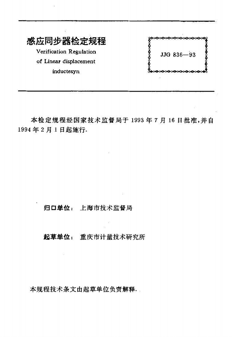 JJG836-1993感应同步器348072@abc4个月前发布关注私信0.12MB11页050JJG836-1993感应同步器此内容为付费资源,请付费后查看¥12¥22黄金会员免费钻石会员免费立即购买您当前未登录!建议登陆后购买,可保存购买订单付费资源 第1页 / 共11页 第2页 / 共11页 试读已结束,还剩9页,您可下载完整版后进行离线阅读 THE END标准规范 文本预览 J灯⊙中华人民共和国国家计量检定规程JJG836-93感应同步器1993年7月16日批准1994年2月1日实施国家技术监督局 查看更多 收起部分 喜欢就支持一下吧收藏