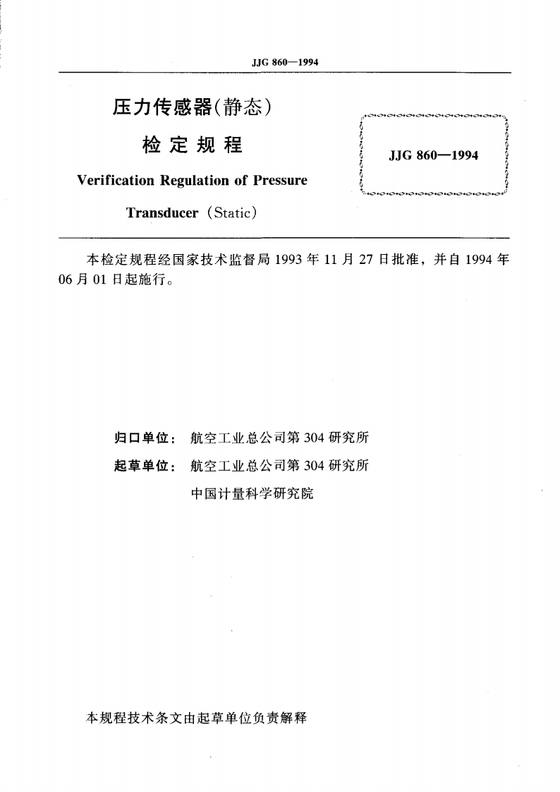 JJG860-1994压力传感器(静态)348072@abc2个月前发布关注私信0.31MB16页0265JJG860-1994压力传感器(静态)此内容为付费资源,请付费后查看¥12¥22黄金会员免费钻石会员免费立即购买您当前未登录!建议登陆后购买,可保存购买订单付费资源 第1页 / 共16页 第2页 / 共16页 试读已结束,还剩14页,您可下载完整版后进行离线阅读 © 版权声明文章版权归作者所有,未经允许请勿转载。THE END标准规范 文本预览 可可G中华人民共和国国家计量检定规程JJG860—1994压力传感器(静态)Pressure Transducer (Static)1993-11-27发布1994-06-01实施国家技术监督局发布 查看更多 收起部分 喜欢就支持一下吧点赞5 分享QQ空间微博QQ好友海报分享复制链接收藏