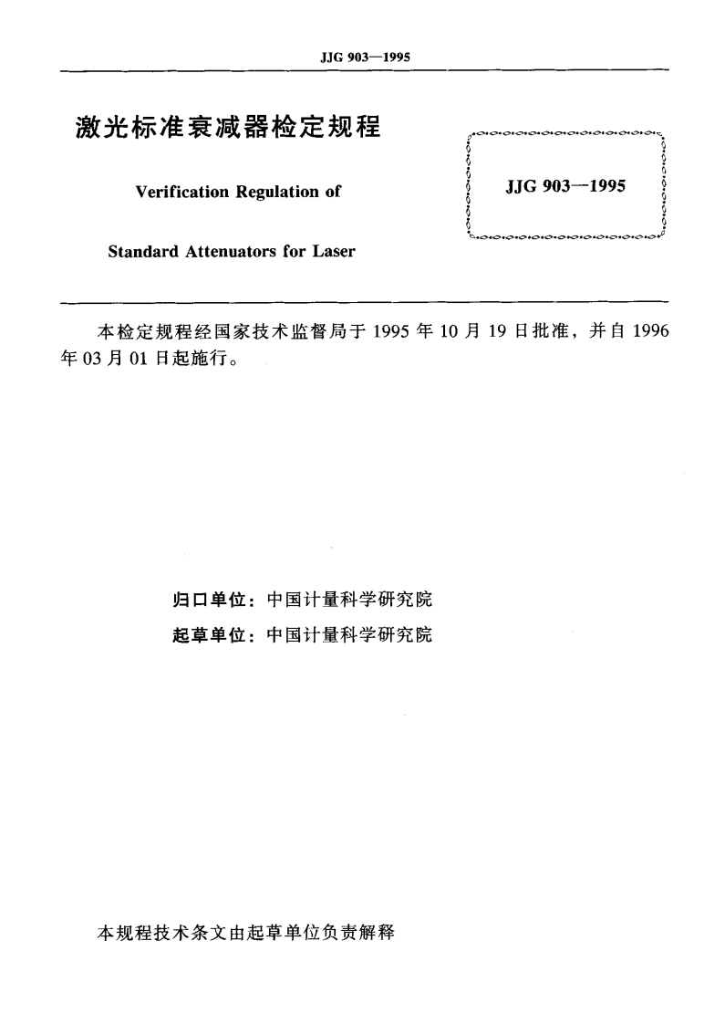 JJG903-1995激光标准衰减器348072@abc4个月前发布关注私信0.15MB10页028JJG903-1995激光标准衰减器此内容为付费资源,请付费后查看¥13¥23黄金会员免费钻石会员免费立即购买您当前未登录!建议登陆后购买,可保存购买订单付费资源 第1页 / 共10页 第2页 / 共10页 试读已结束,还剩8页,您可下载完整版后进行离线阅读 THE END标准规范 文本预览 JJG中华人民共和国国家计量检定规程JJG903-1995激光标准衰减器Standard Attenuators for Laser1995-10-19发布1996-03-01实施国家技术监督局发布 查看更多 收起部分 喜欢就支持一下吧收藏