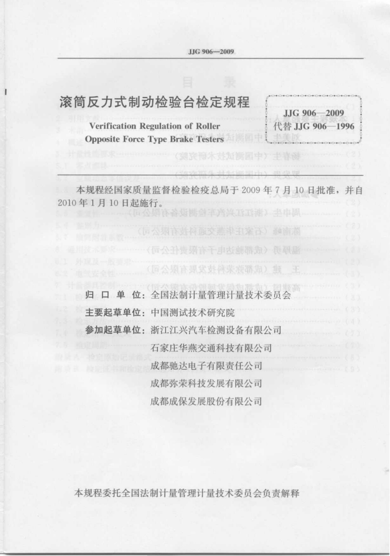 JJG906-2009滚筒反力式制动检验台348072@abc4个月前发布关注私信1.75MB15页025JJG906-2009滚筒反力式制动检验台此内容为付费资源,请付费后查看¥13¥23黄金会员免费钻石会员免费立即购买您当前未登录!建议登陆后购买,可保存购买订单付费资源 第1页 / 共15页 第2页 / 共15页 试读已结束,还剩13页,您可下载完整版后进行离线阅读 THE END标准规范 文本预览 可G中华人民共和国国家计量检定规程JJG906—2009滚筒反力式制动检验台Roller Opposite Force Type Brake Testers2009-07-10发布2010-01-10实施国家质量监督检验检疫总局发布 查看更多 收起部分 喜欢就支持一下吧收藏