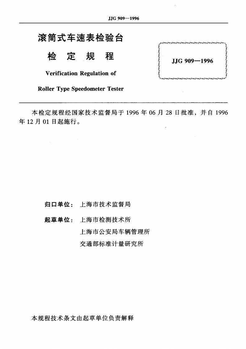 JJG909-1996滚筒式车速表检验台348072@abc4个月前发布关注私信0.15MB10页022JJG909-1996滚筒式车速表检验台此内容为付费资源,请付费后查看¥13¥23黄金会员免费钻石会员免费立即购买您当前未登录!建议登陆后购买,可保存购买订单付费资源 第1页 / 共10页 第2页 / 共10页 试读已结束,还剩8页,您可下载完整版后进行离线阅读 THE END标准规范 文本预览 JJG中华人民共和国国家计量检定规程JJG909一1996滚筒式车速表检验台Roller Type Speedometer Tester1996-06-28发布1996-12一01实施国家技术监督局发布 查看更多 收起部分 喜欢就支持一下吧收藏