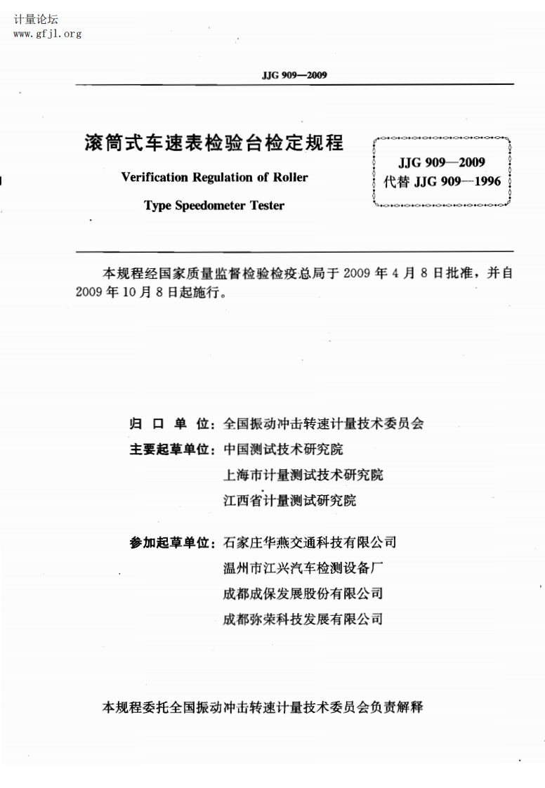 JJG909-2009滚筒式车速表检验台348072@abc4个月前发布关注私信0.24MB10页045JJG909-2009滚筒式车速表检验台此内容为付费资源,请付费后查看¥13¥23黄金会员免费钻石会员免费立即购买您当前未登录!建议登陆后购买,可保存购买订单付费资源 第1页 / 共10页 第2页 / 共10页 试读已结束,还剩8页,您可下载完整版后进行离线阅读 THE END标准规范 文本预览 计量论坛www.gfjl.org可G中华人民共和国国家计量检定规程3JJG909-2009滚筒式车速表检验台Roller Type Speedometer Tester2009-04-08发布2009-10-08实施国家质量监督检验检疫总局发布 查看更多 收起部分 喜欢就支持一下吧收藏