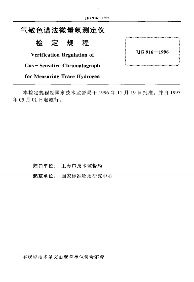 JJG916-1996气敏色谱法微量氢测定仪348072@abc4个月前发布关注私信0.19MB10页044JJG916-1996气敏色谱法微量氢测定仪此内容为付费资源,请付费后查看¥13¥23黄金会员免费钻石会员免费立即购买您当前未登录!建议登陆后购买,可保存购买订单付费资源 第1页 / 共10页 第2页 / 共10页 试读已结束,还剩8页,您可下载完整版后进行离线阅读 THE END标准规范 文本预览 JJG中华人民共和国国家计量检定规程JJG916-1996气敏色谱法微量氢测定仪Gas-Sensitive Chromatograph forMeasuring Trace Hydrogen1996-11-19发布1997-05-01实施国家技术监督局发布 查看更多 收起部分 喜欢就支持一下吧收藏