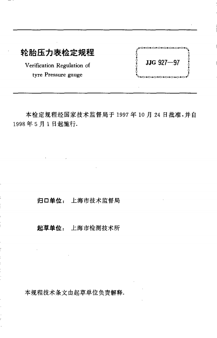 JJG927-1997轮胎压力表鉴定规程348072@abc4个月前发布关注私信0.10MB9页048JJG927-1997轮胎压力表鉴定规程此内容为付费资源,请付费后查看¥13¥23黄金会员免费钻石会员免费立即购买您当前未登录!建议登陆后购买,可保存购买订单付费资源 第1页 / 共9页 第2页 / 共9页 试读已结束,还剩7页,您可下载完整版后进行离线阅读 THE END标准规范 文本预览 J灯G中华人民共和国国家计量检定规程JJG927-97轮胎压力表1997年10月24日批准1998年5月1日实施国家技术监督局 查看更多 收起部分 喜欢就支持一下吧收藏