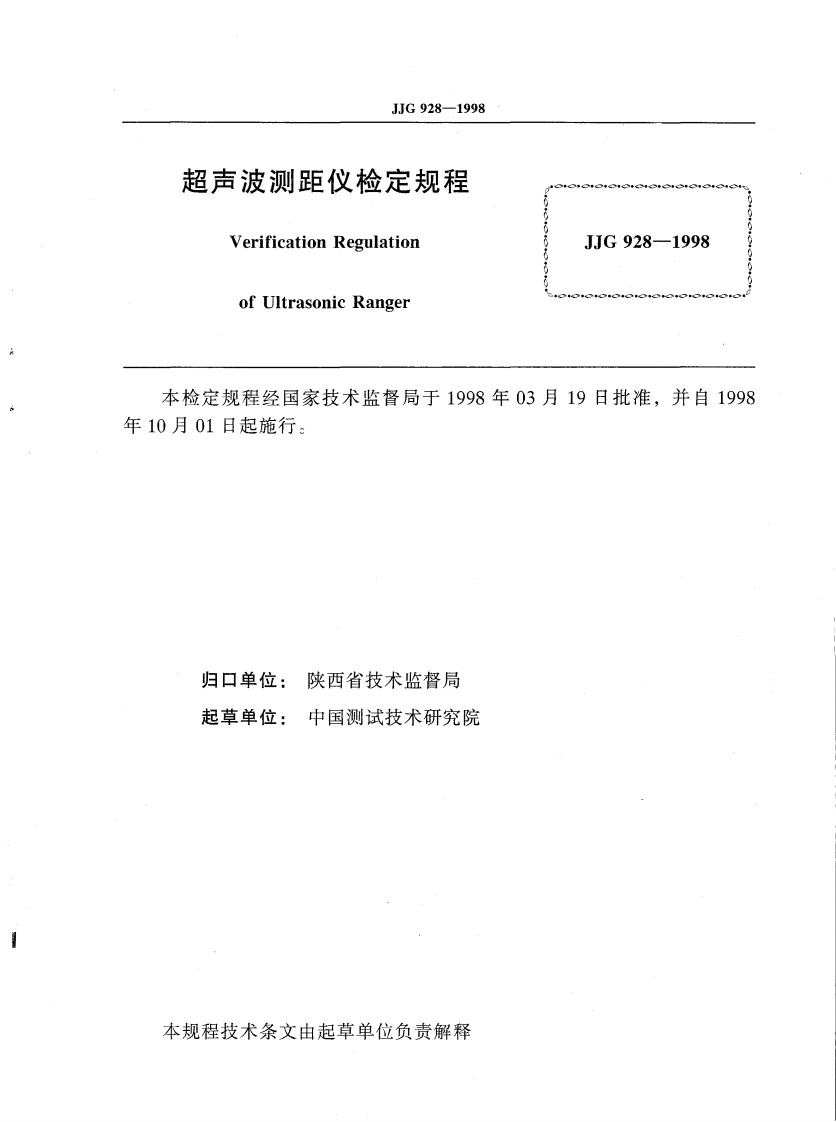 JJG928-1998超声波测距仪检定规程348072@abc4个月前发布关注私信0.37MB16页039JJG928-1998超声波测距仪检定规程此内容为付费资源,请付费后查看¥13¥23黄金会员免费钻石会员免费立即购买您当前未登录!建议登陆后购买,可保存购买订单付费资源 第1页 / 共16页 第2页 / 共16页 试读已结束,还剩14页,您可下载完整版后进行离线阅读 THE END标准规范 文本预览 可G中华人民共和国国家计量检定规程JJG928-1998超声波测距仪Ultrasonic Ranger1998-03-19发布1998-10-01实施国家技术监督局发布 查看更多 收起部分 喜欢就支持一下吧收藏
