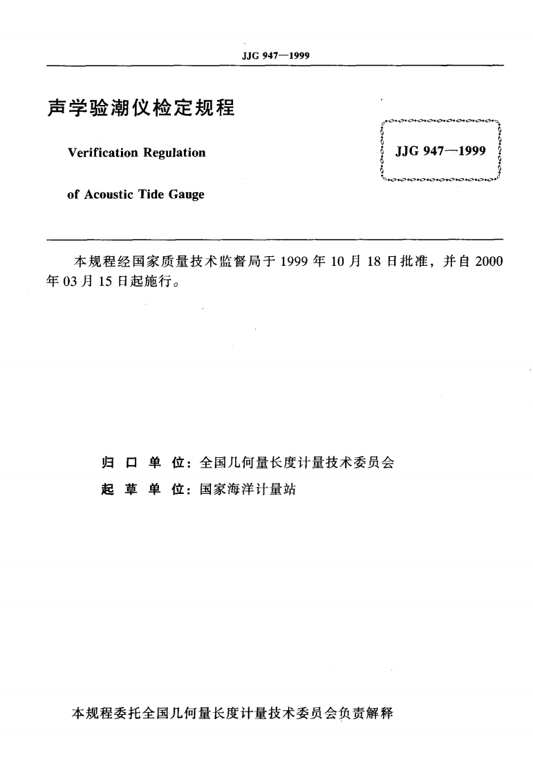 JJG947-1999声学验潮仪348072@abc4个月前发布关注私信0.20MB14页041JJG947-1999声学验潮仪此内容为付费资源,请付费后查看¥13¥23黄金会员免费钻石会员免费立即购买您当前未登录!建议登陆后购买,可保存购买订单付费资源 第1页 / 共14页 第2页 / 共14页 试读已结束,还剩12页,您可下载完整版后进行离线阅读 THE END标准规范 文本预览 可g中华人民共和国国家计量检定规程JJG947-1999声学验潮仪Acoustic Tide Gauge1999-10-18发布2000-03-15实施国家质量技术监督局发布 查看更多 收起部分 喜欢就支持一下吧收藏