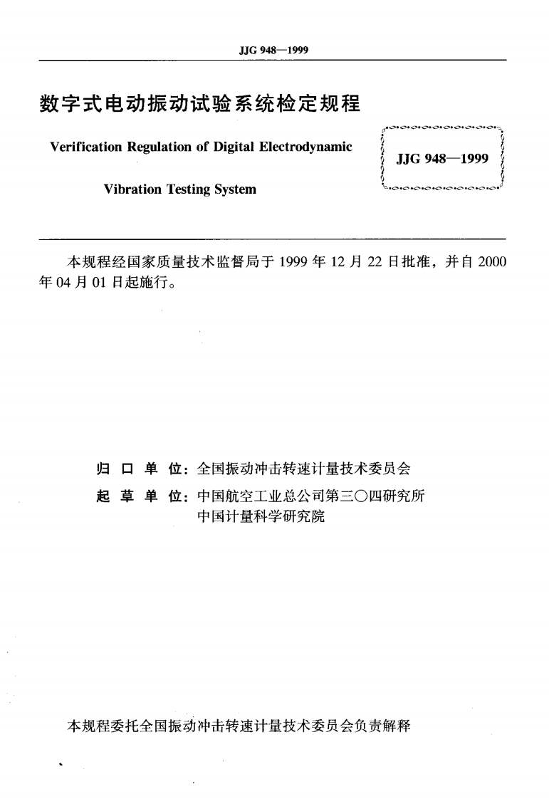 JJG948-1999数字式电动振动试验系统348072@abc4个月前发布关注私信0.87MB26页027JJG948-1999数字式电动振动试验系统此内容为付费资源,请付费后查看¥13¥23黄金会员免费钻石会员免费立即购买您当前未登录!建议登陆后购买,可保存购买订单付费资源 第1页 / 共26页 第2页 / 共26页 试读已结束,还剩24页,您可下载完整版后进行离线阅读 THE END标准规范 文本预览 可可G中华人民共和国国家计量检定规程JJG948一1999数字式电动振动试验系统Digital Electrodynamic Vibration Testing System1999-12-22发布2000-04-01实施国家质量技术监督局发布 查看更多 收起部分 喜欢就支持一下吧收藏