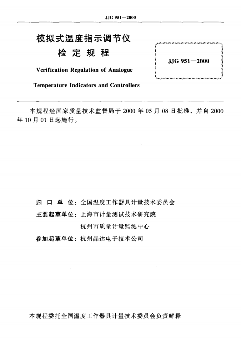 JJG951-2000模拟式温度指示调节仪348072@abc4个月前发布关注私信0.78MB31页035JJG951-2000模拟式温度指示调节仪此内容为付费资源,请付费后查看¥13¥23黄金会员免费钻石会员免费立即购买您当前未登录!建议登陆后购买,可保存购买订单付费资源 第1页 / 共31页 第2页 / 共31页 试读已结束,还剩29页,您可下载完整版后进行离线阅读 THE END标准规范 文本预览 G中华人民共和国国家计量检定规程JJG951-2000模拟式温度指示调节仪Analogue Temperature Indicatorsand Controllers2000-05-08发布2000-10-01实施国家质量技术监督局发布 查看更多 收起部分 喜欢就支持一下吧收藏