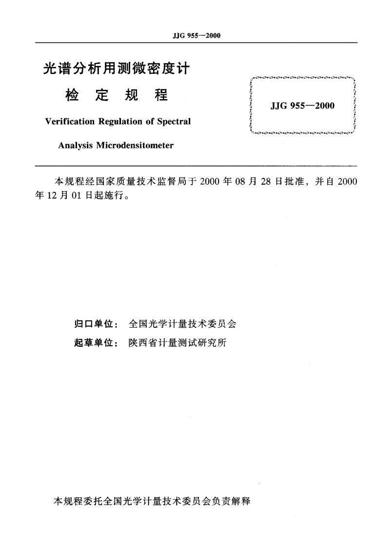 JJG955-2000光谱分析用测微密度计348072@abc4个月前发布关注私信0.23MB11页049JJG955-2000光谱分析用测微密度计此内容为付费资源,请付费后查看¥13¥23黄金会员免费钻石会员免费立即购买您当前未登录!建议登陆后购买,可保存购买订单付费资源 第1页 / 共11页 第2页 / 共11页 试读已结束,还剩9页,您可下载完整版后进行离线阅读 THE END标准规范 文本预览 J可G中华人民共和国国家计量检定规程JJG955-2000光谱分析用测微密度计Spectral Analysis Microdensitometer2000-08-28发布2000-12-01实施国家质量技术监督局发布 查看更多 收起部分 喜欢就支持一下吧收藏