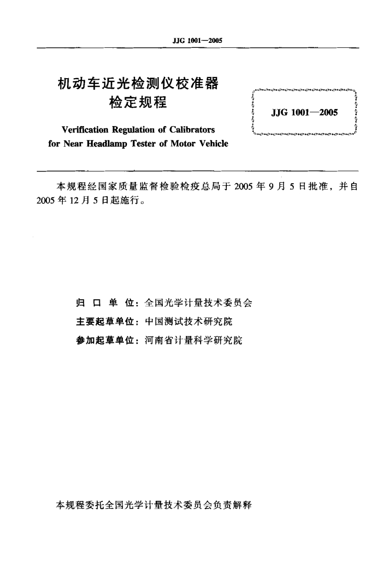 JJG1001-2005机动车近光检测仪校准器348072@abc4个月前发布关注私信0.37MB21页036JJG1001-2005机动车近光检测仪校准器此内容为付费资源,请付费后查看¥13¥23黄金会员免费钻石会员免费立即购买您当前未登录!建议登陆后购买,可保存购买订单付费资源 第1页 / 共21页 第2页 / 共21页 试读已结束,还剩19页,您可下载完整版后进行离线阅读 THE END标准规范 文本预览 可G中华人民共和国国家计量检定规程JJG1001一2005机动车近光检测仪校准器Calibrators for Near Headlamp Tester of Motor Vehicle2005-09-05发布2005-12-05实施国家质量监督检验检疫总局发布 查看更多 收起部分 喜欢就支持一下吧收藏
