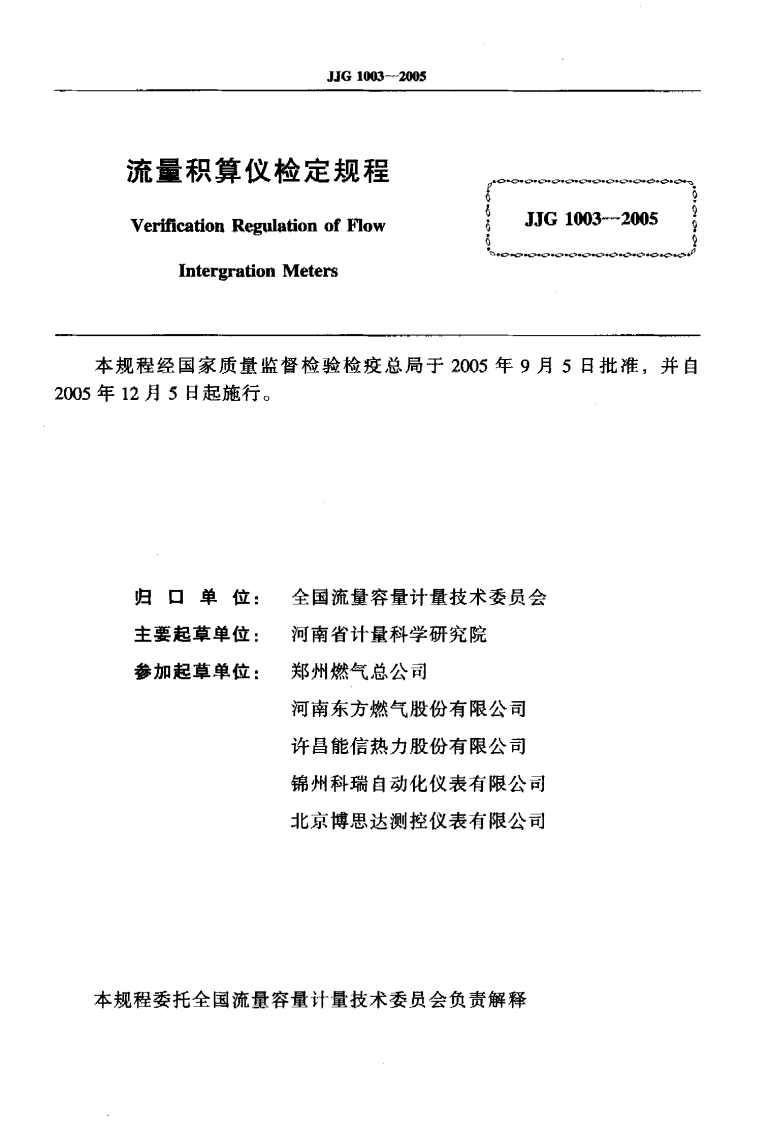 JJG1003-2005流量积算仪348072@abc4个月前发布关注私信0.42MB21页050JJG1003-2005流量积算仪此内容为付费资源,请付费后查看¥13¥23黄金会员免费钻石会员免费立即购买您当前未登录!建议登陆后购买,可保存购买订单付费资源 第1页 / 共21页 第2页 / 共21页 试读已结束,还剩19页,您可下载完整版后进行离线阅读 THE END标准规范 文本预览 前G中华人民共和国国家计量检定规程JJG1003一2005流量积算仪Flow Intergration Meters2005-09-05发布2005-12-05实施国家质量监督检验检疫总局发布 查看更多 收起部分 喜欢就支持一下吧收藏