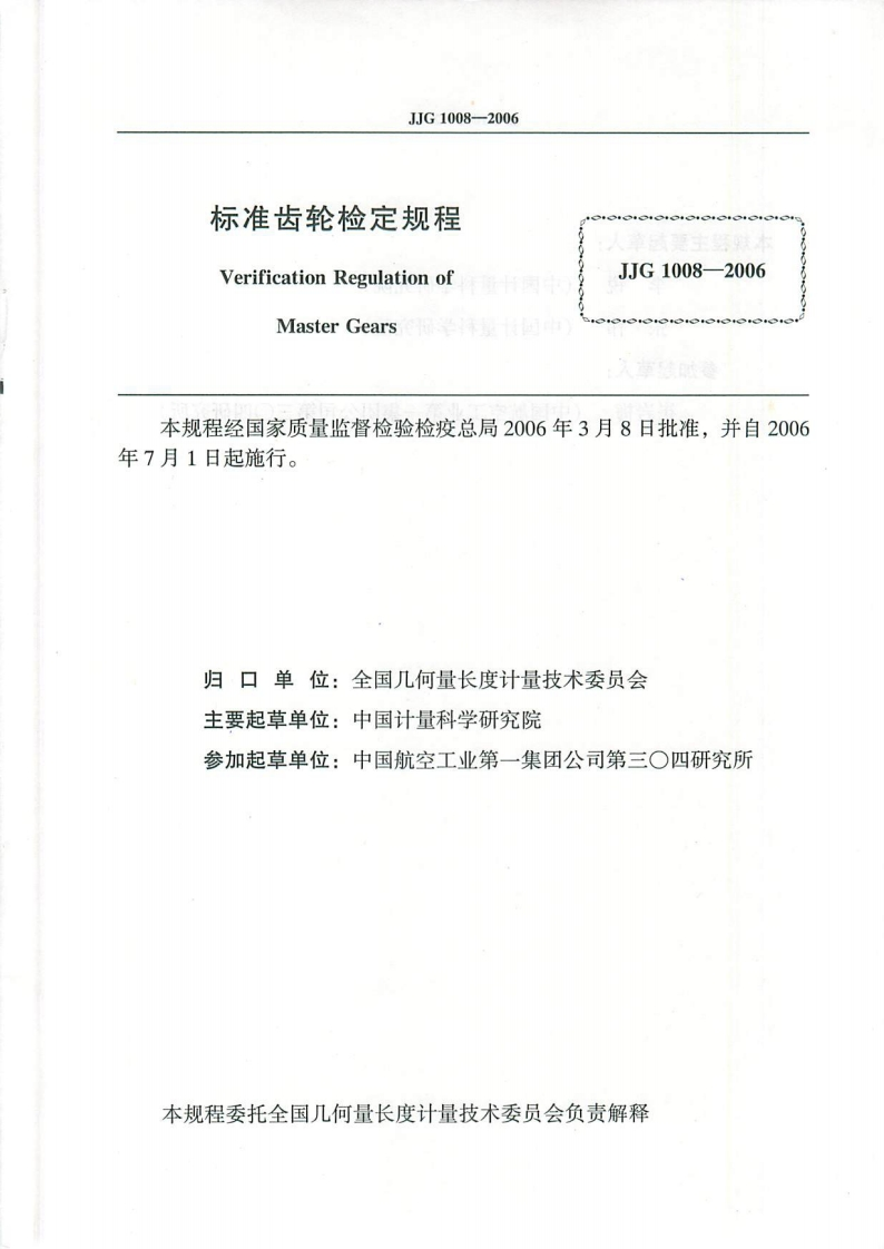 JJG1008-2006标准齿轮348072@abc4个月前发布关注私信5.97MB33页038JJG1008-2006标准齿轮此内容为付费资源,请付费后查看¥13¥23黄金会员免费钻石会员免费立即购买您当前未登录!建议登陆后购买,可保存购买订单付费资源 第1页 / 共33页 第2页 / 共33页 试读已结束,还剩31页,您可下载完整版后进行离线阅读 THE END标准规范 文本预览 可G中华人民共和国国家计量检定规程JJG1008一2006标准齿轮Master Gears2006-03-08发布2006-07-01实施国家质量监督检验检疫总局发布 查看更多 收起部分 喜欢就支持一下吧收藏