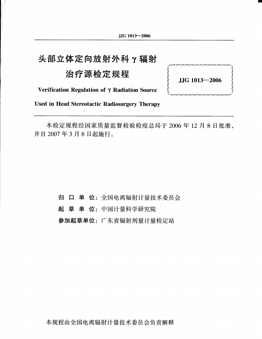 JJG1013-2006头部立体定向放射外科r辐射治疗源348072@abc4个月前发布关注私信0.73MB19页045JJG1013-2006头部立体定向放射外科r辐射治疗源此内容为付费资源,请付费后查看¥13¥23黄金会员免费钻石会员免费立即购买您当前未登录!建议登陆后购买,可保存购买订单付费资源 第1页 / 共19页 第2页 / 共19页 试读已结束,还剩17页,您可下载完整版后进行离线阅读 THE END标准规范 文本预览 可可G中华人民共和国国家计量检定规程JJG1013一2006头部立体定向放射外科Y辐射治疗源Y Radiation Source Used in Head StereotacticRadiosurgery Therapy2006-12-08发布2802辉03-08实施国家质量监督检验检疫总局发布 查看更多 收起部分 喜欢就支持一下吧收藏