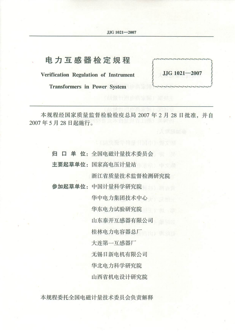 JJG1021-2007电力互感器348072@abc4个月前发布关注私信6.07MB33页044JJG1021-2007电力互感器此内容为付费资源,请付费后查看¥13¥23黄金会员免费钻石会员免费立即购买您当前未登录!建议登陆后购买,可保存购买订单付费资源 第1页 / 共33页 第2页 / 共33页 试读已结束,还剩31页,您可下载完整版后进行离线阅读 THE END标准规范 文本预览 可可G中华人民共和国国家计量检定规程JJG1021-2007电力互感器Instrument Transformers in Power System2007-02-28发布2007-05-28实施国家质量监督检验检疫总局发布 查看更多 收起部分 喜欢就支持一下吧收藏