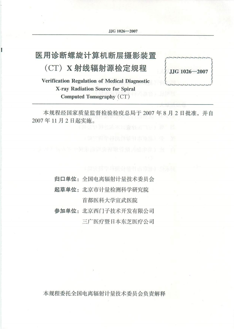 JJG1026-2007医用螺旋CT348072@abc4个月前发布关注私信3.49MB20页037JJG1026-2007医用螺旋CT此内容为付费资源,请付费后查看¥13¥23黄金会员免费钻石会员免费立即购买您当前未登录!建议登陆后购买,可保存购买订单付费资源 第1页 / 共20页 第2页 / 共20页 试读已结束,还剩18页,您可下载完整版后进行离线阅读 THE END标准规范 文本预览 可屆中华人民共和国国家计量检定规程JJG1026-2007医用诊断螺旋计算机断层摄影装置(CT)X射线辐射源Medical Diagnostic X-ray Radiation Source for SpiralComputed Tomography (CT)2007-08-02发布2007-11-02实施国家质量监督检验检疫总局发布 查看更多 收起部分 喜欢就支持一下吧收藏